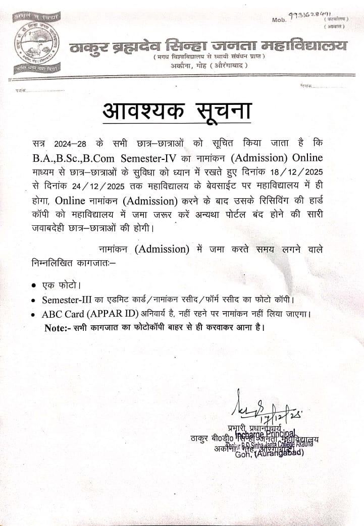 © 2026 THAKUR B.D.SINHA JANTA COLLEGE.  All Rights Reserved.