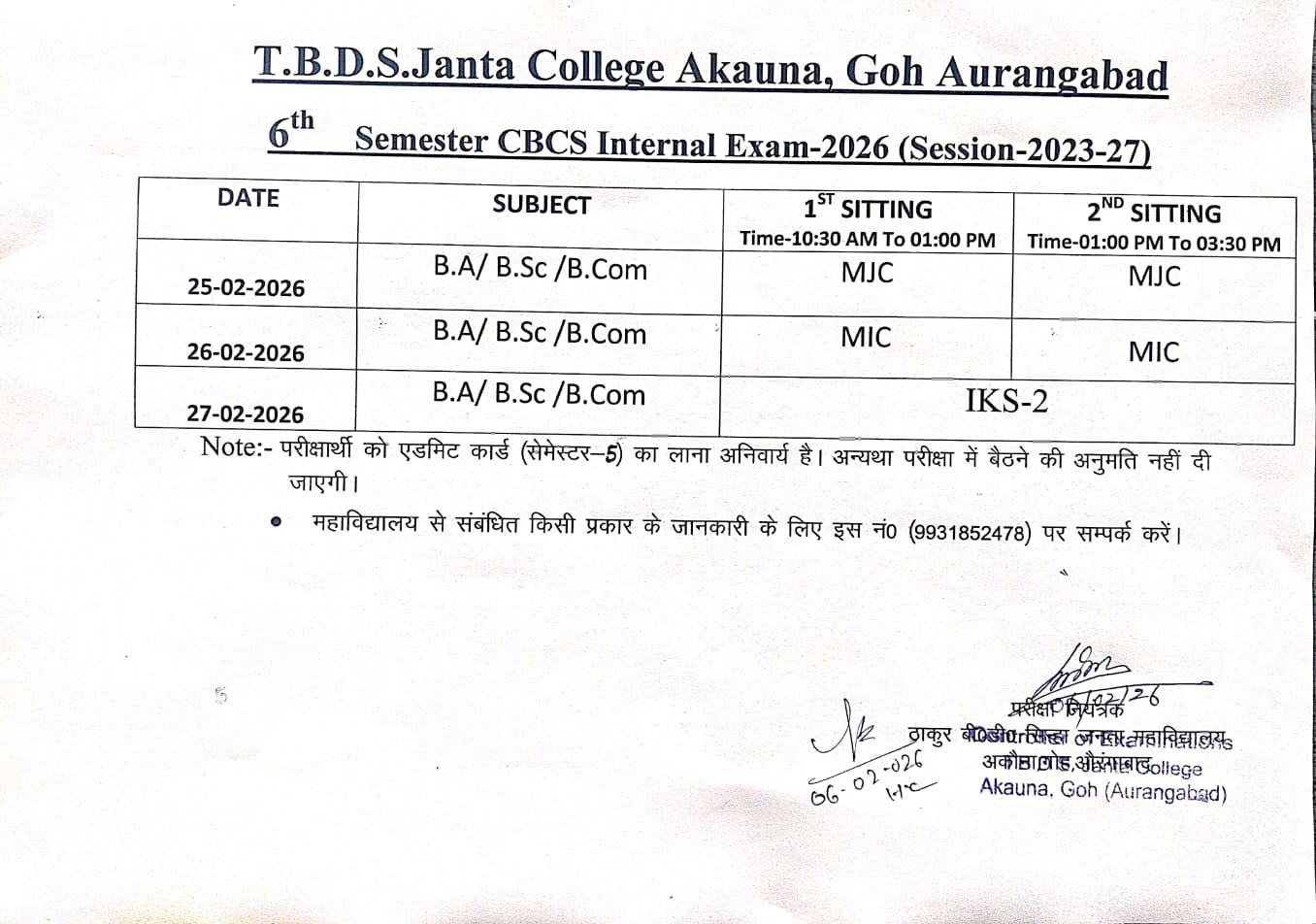 >> THAKUR B.D.SINHA JANTA COLLEGE Notice Board